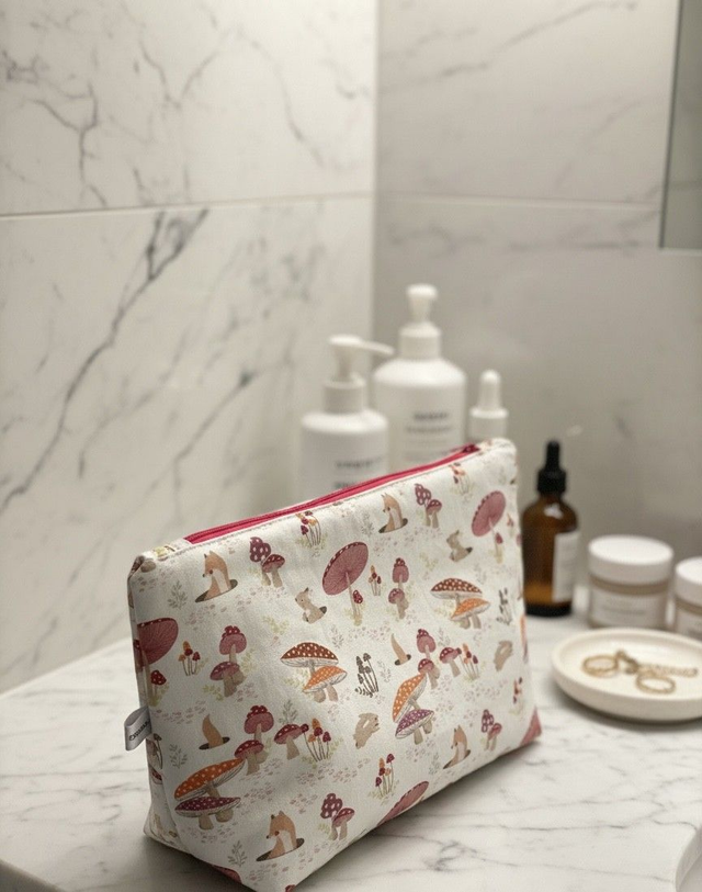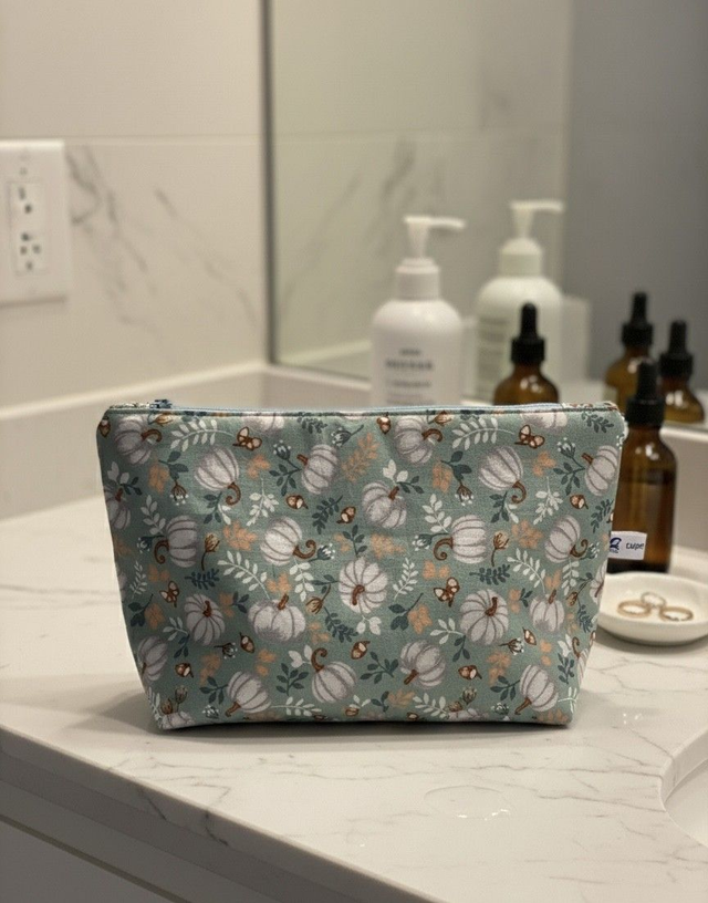 Trousse de toilette tissus coton imprimer extérieur et tissus intérieur de couleur assorti . Dimension 19cm de haut 30cm de large et 10cm dans le fond.